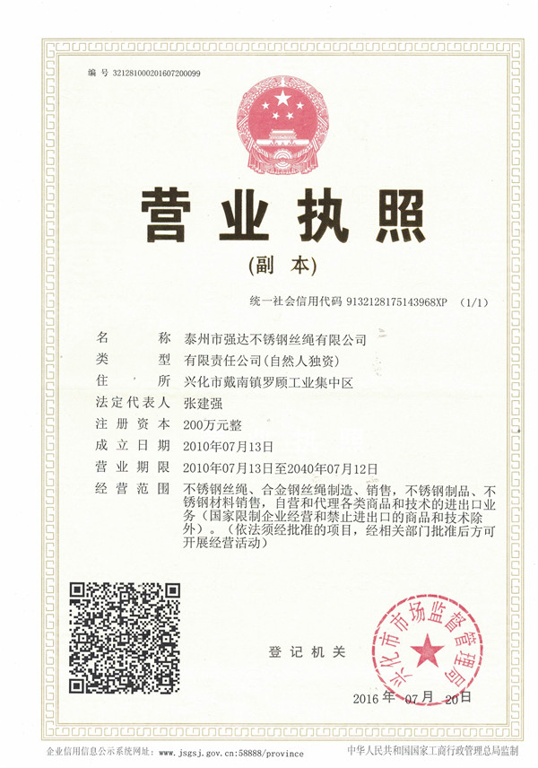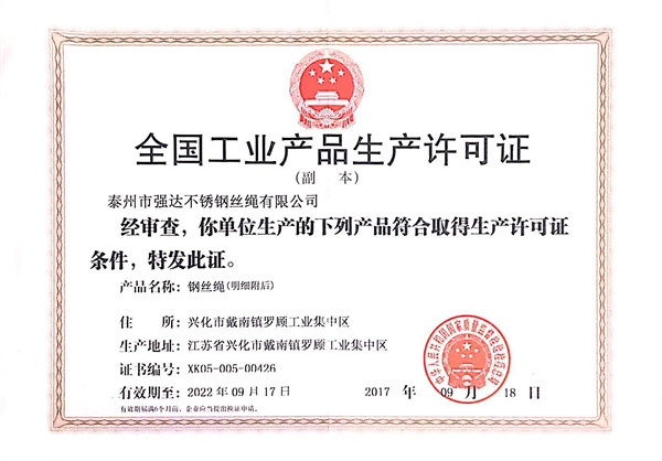 您好,歡迎訪問(wèn)泰州市強(qiáng)達(dá)不銹鋼絲繩有限公司官網(wǎng)!